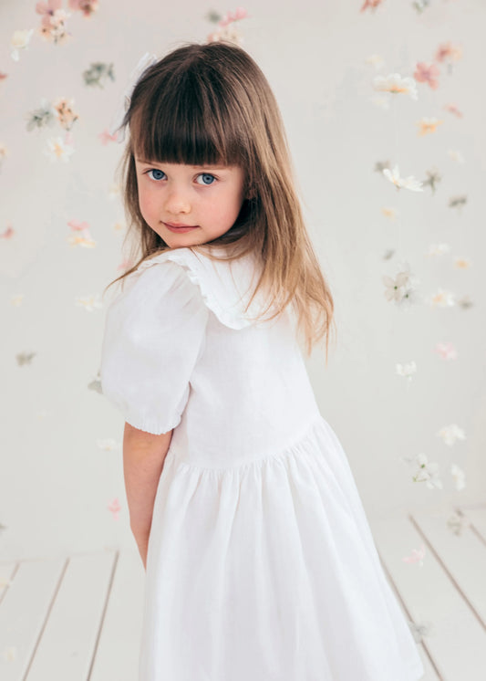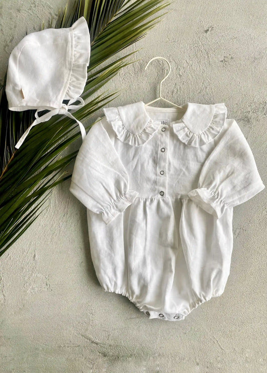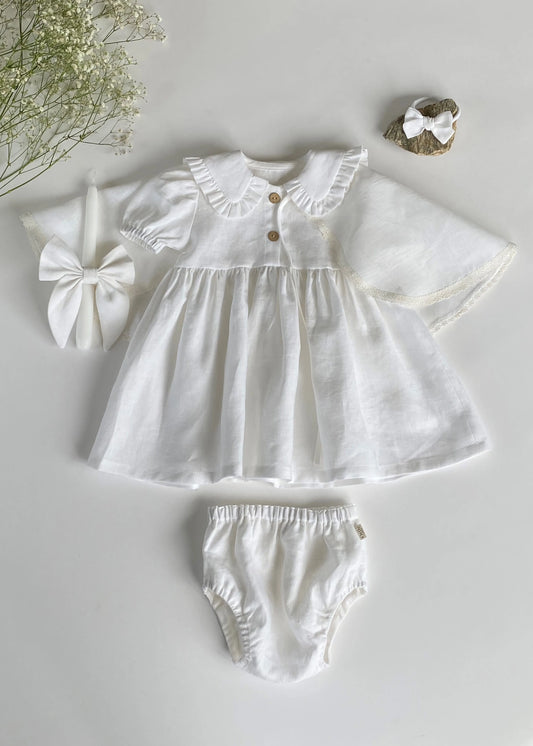 Lininė krikšto suknelė GRETA - saulės kliošas