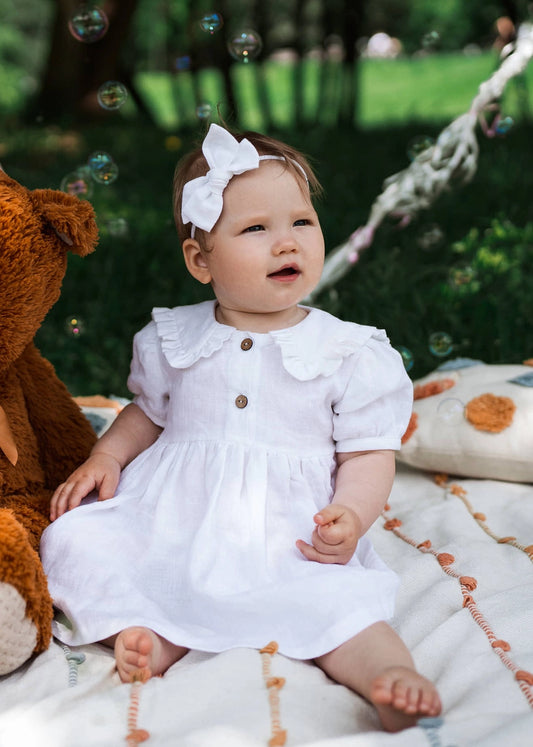 Baltas lininis plaukų kaspinas (Vidutinis)