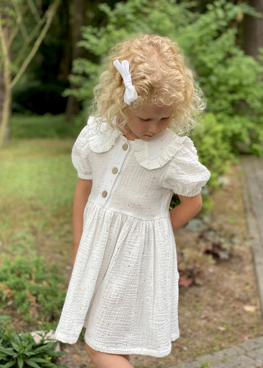 Krikštynų suknelė mergaitei OTILIA - balta su auksu