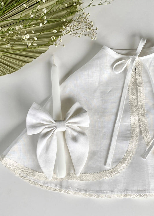 Krikštynų galvajuostė su kaspinu - baltas linas (Mažas)