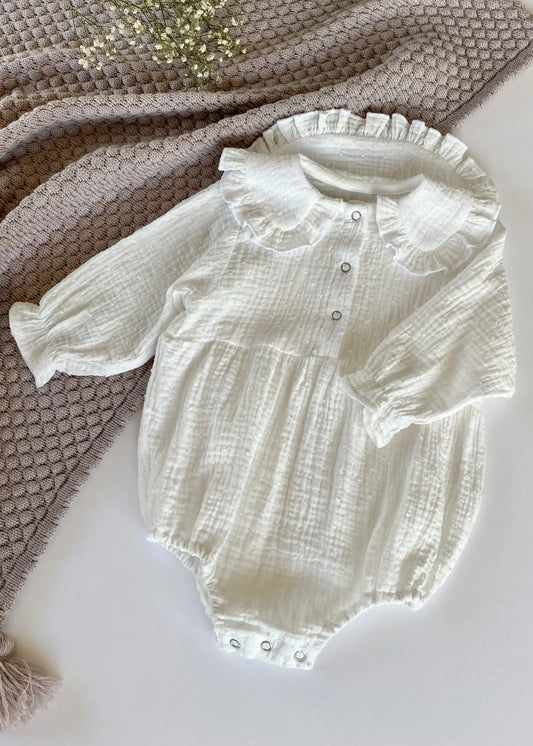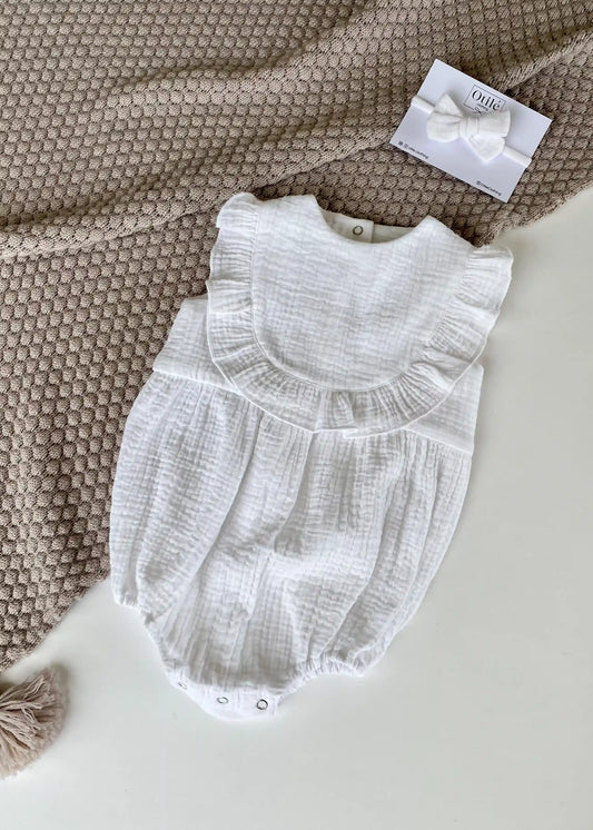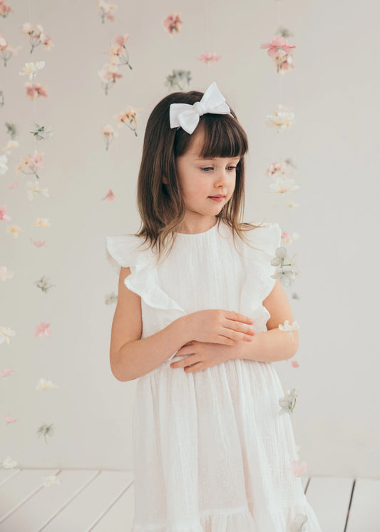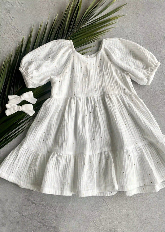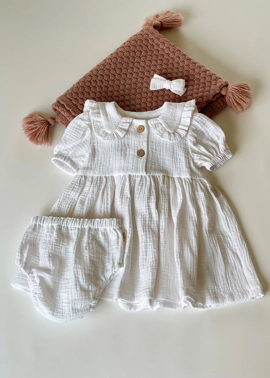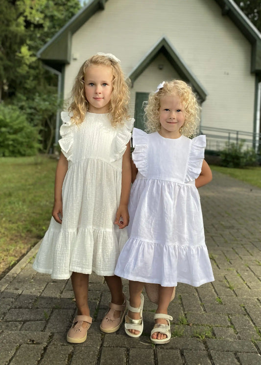 Muslino suknelė su sparneliais SOFIA - balta plumetis