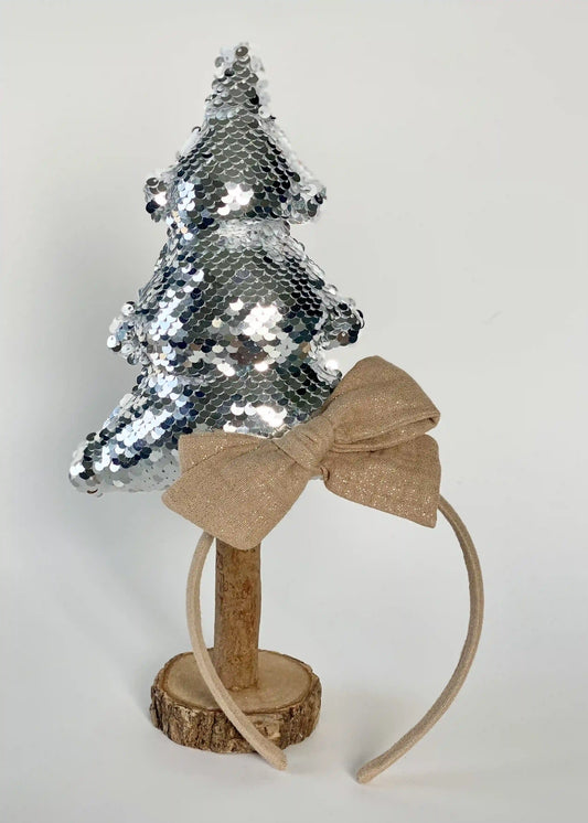 Plaukų lankelis - smėlio blizgus (Dideliu kaspinu)