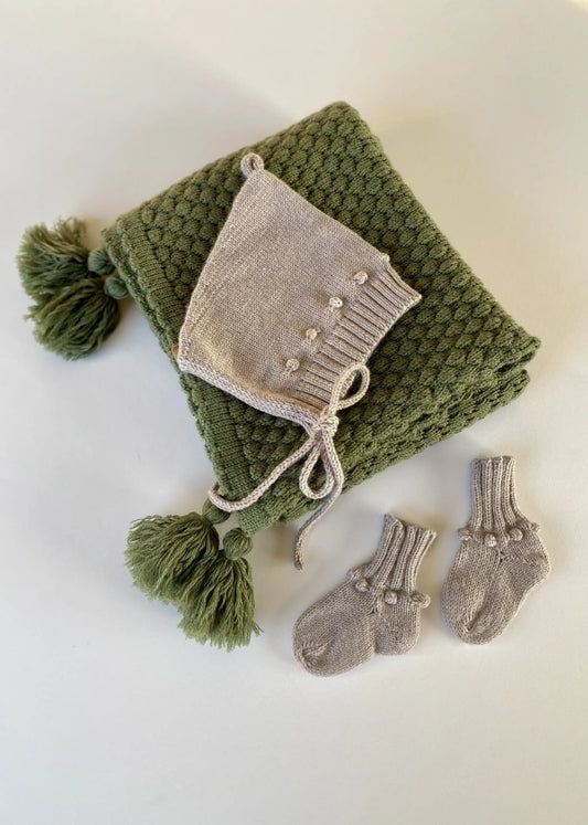 Merino vilnos komplektukas naujagimiui - šviesiai rusvas