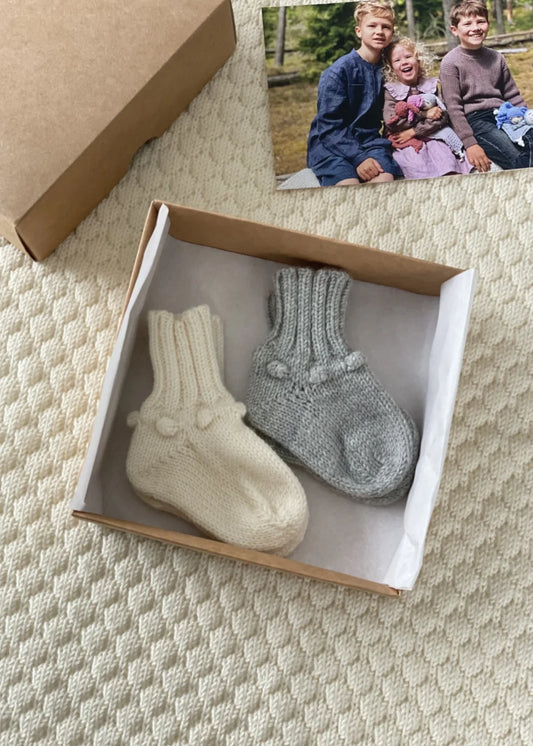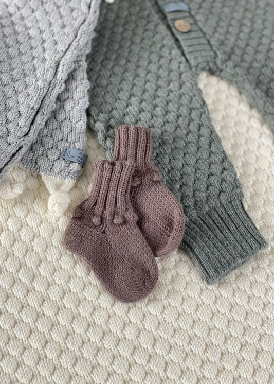 Merino vilnos kojinės naujagimiui - šviesiai pilkos