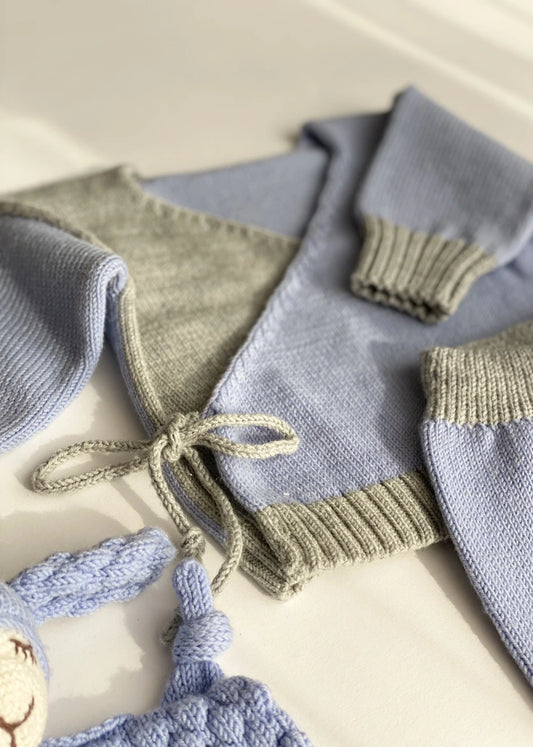 Megztas dvispalvis kostiumėlis kūdikiui - dangaus žydra