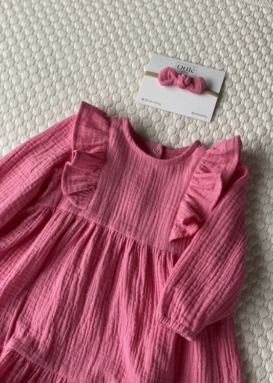 Rožinė muslino suknelė su sparneliais SOFIA