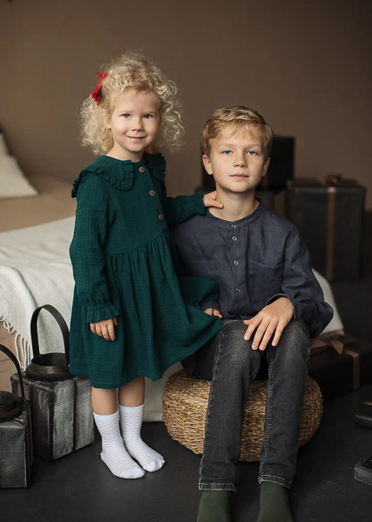 Muslino suknelė su apykale OTILIA - Žalia