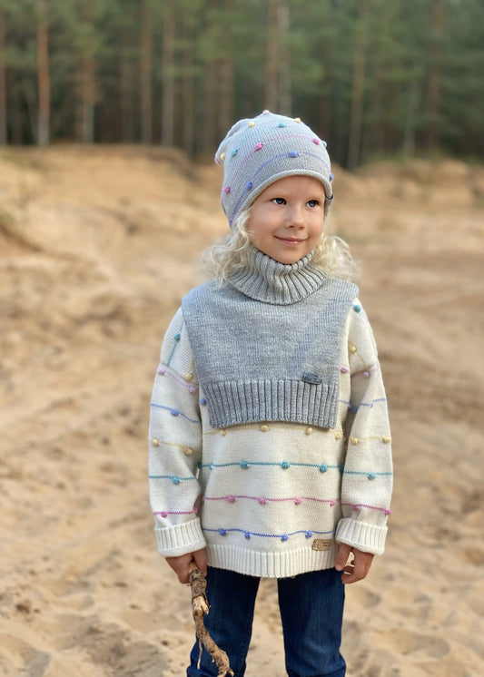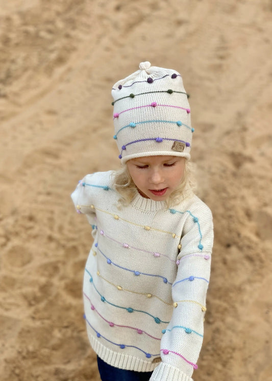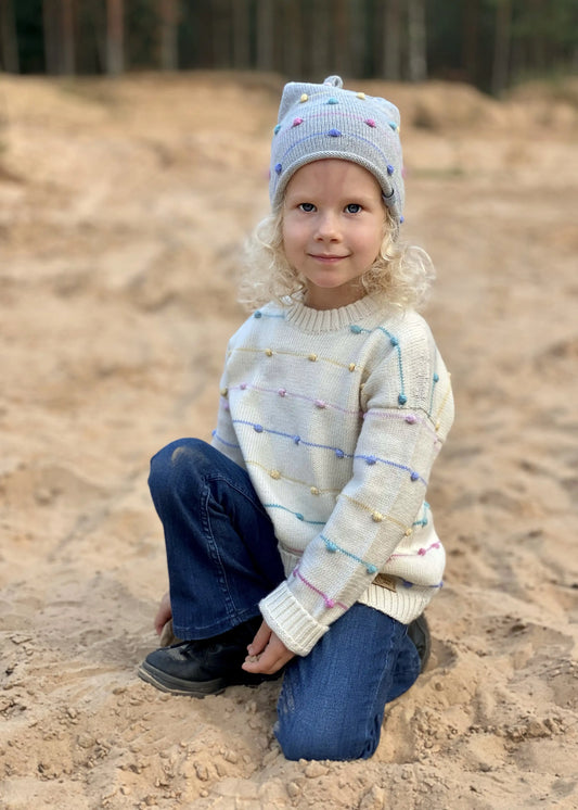 Merino vilnos kepurė su spalvotais burbuliukais - pieno balta
