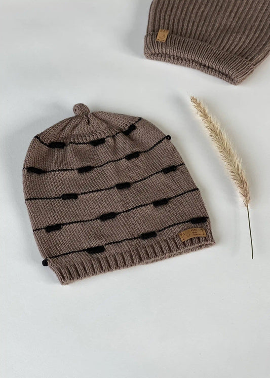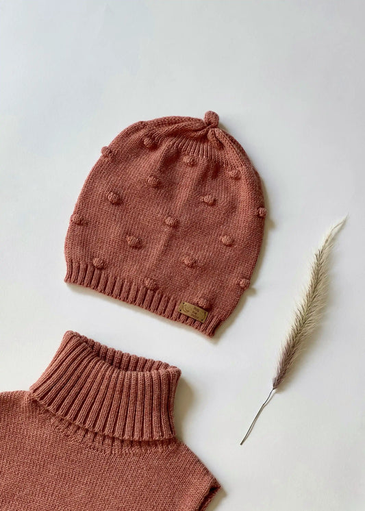 Merino vilnos kepurė su burbuliukais - šviesiai rusva