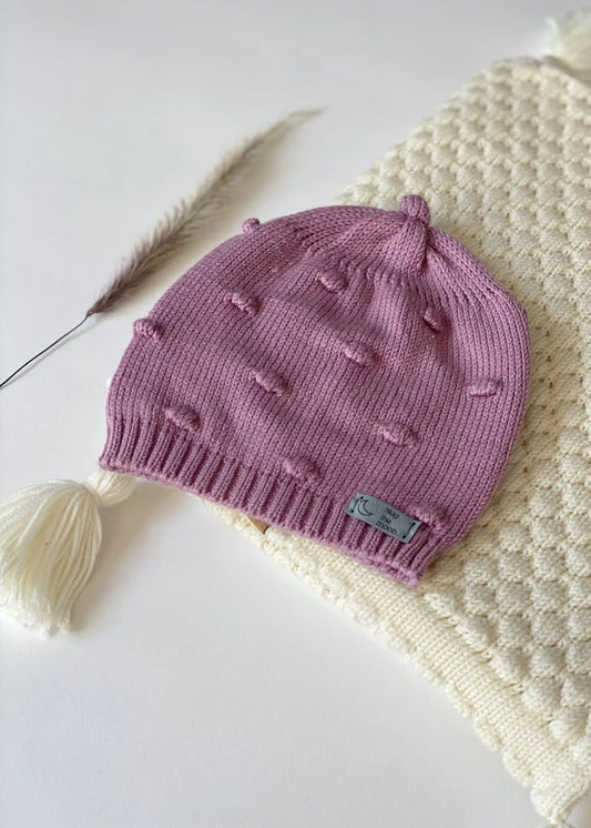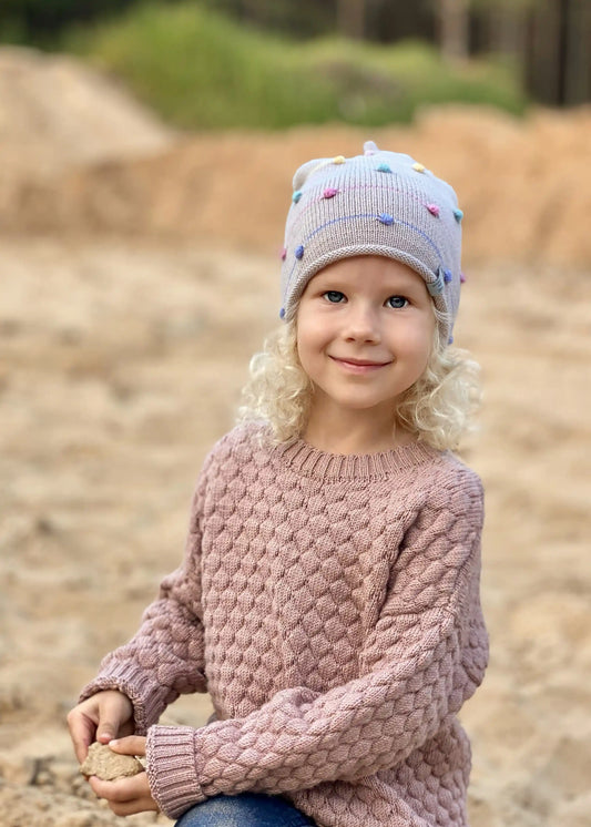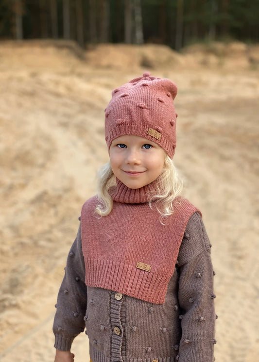 Merino vilnos kepurė su burbuliukais - sendinta rožinė