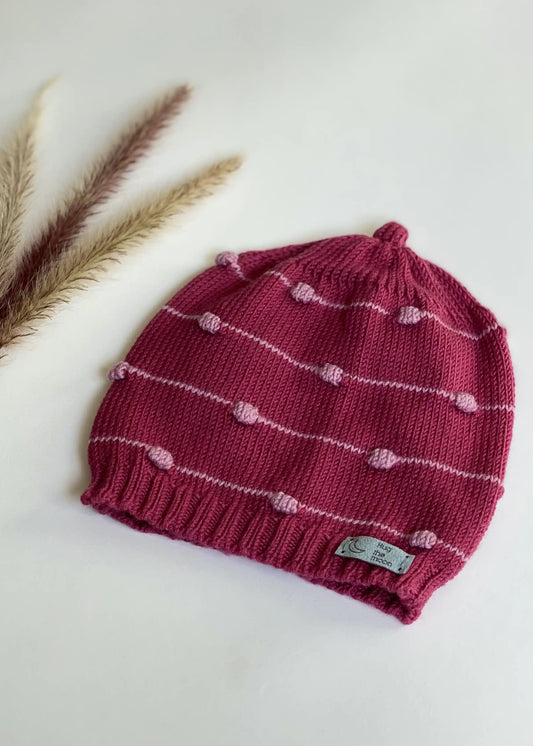 Merino vilnos kepurė su burbuliukais - sendinta rožinė