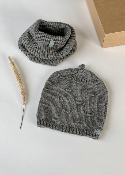 Merino vilnos kepurė su brukšneliais - pilka