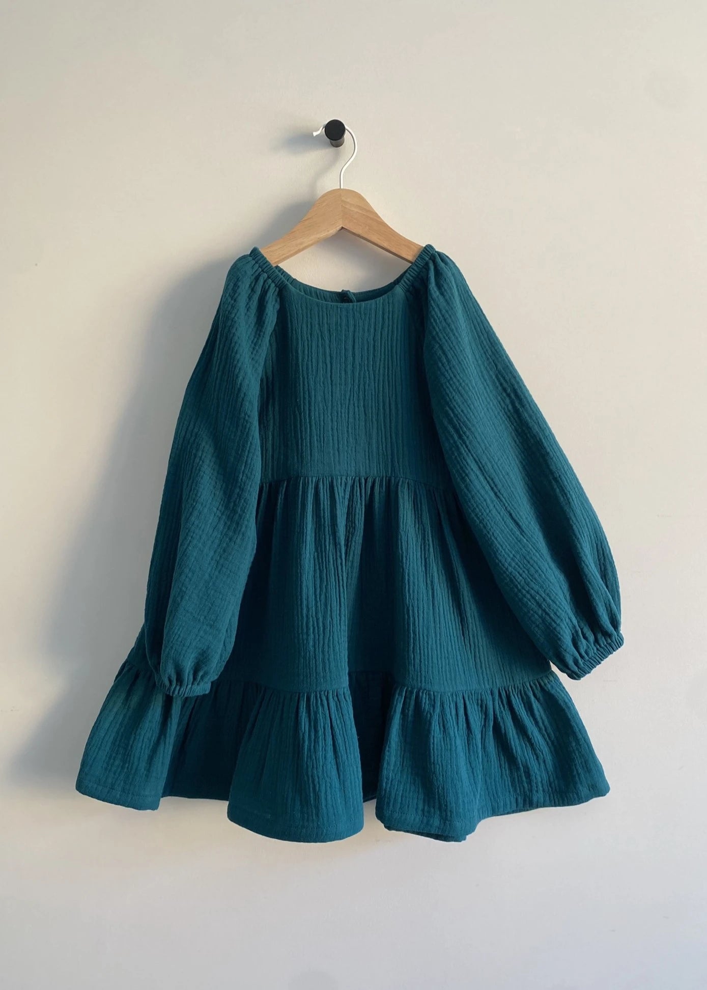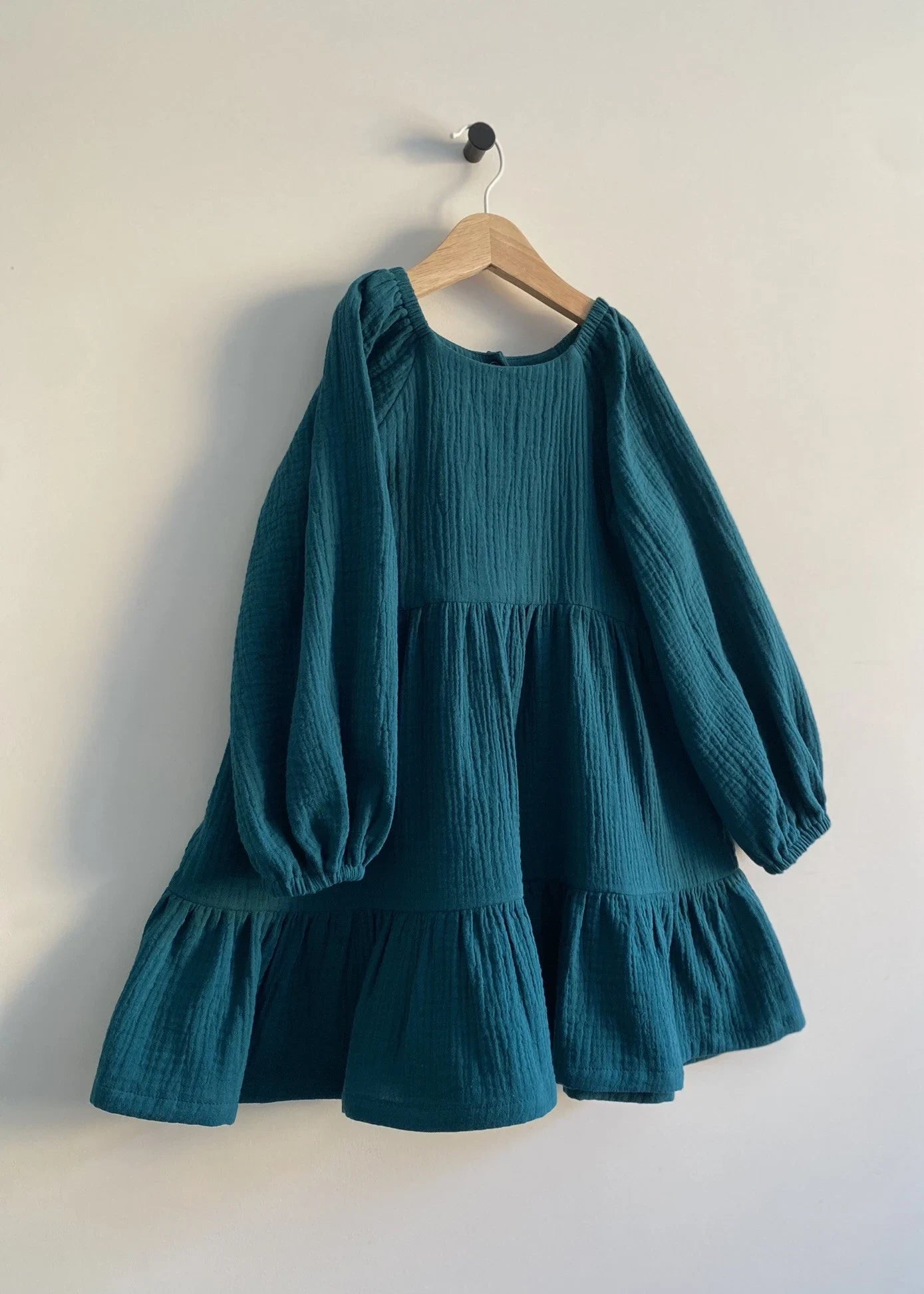 Boho stiliaus muslino suknelė mergaite. Lengvas ir minkštas audinys,pūstos rankovės ir laisvas suknelės siluetas suteikia patogumo ir laisvės jausmą.