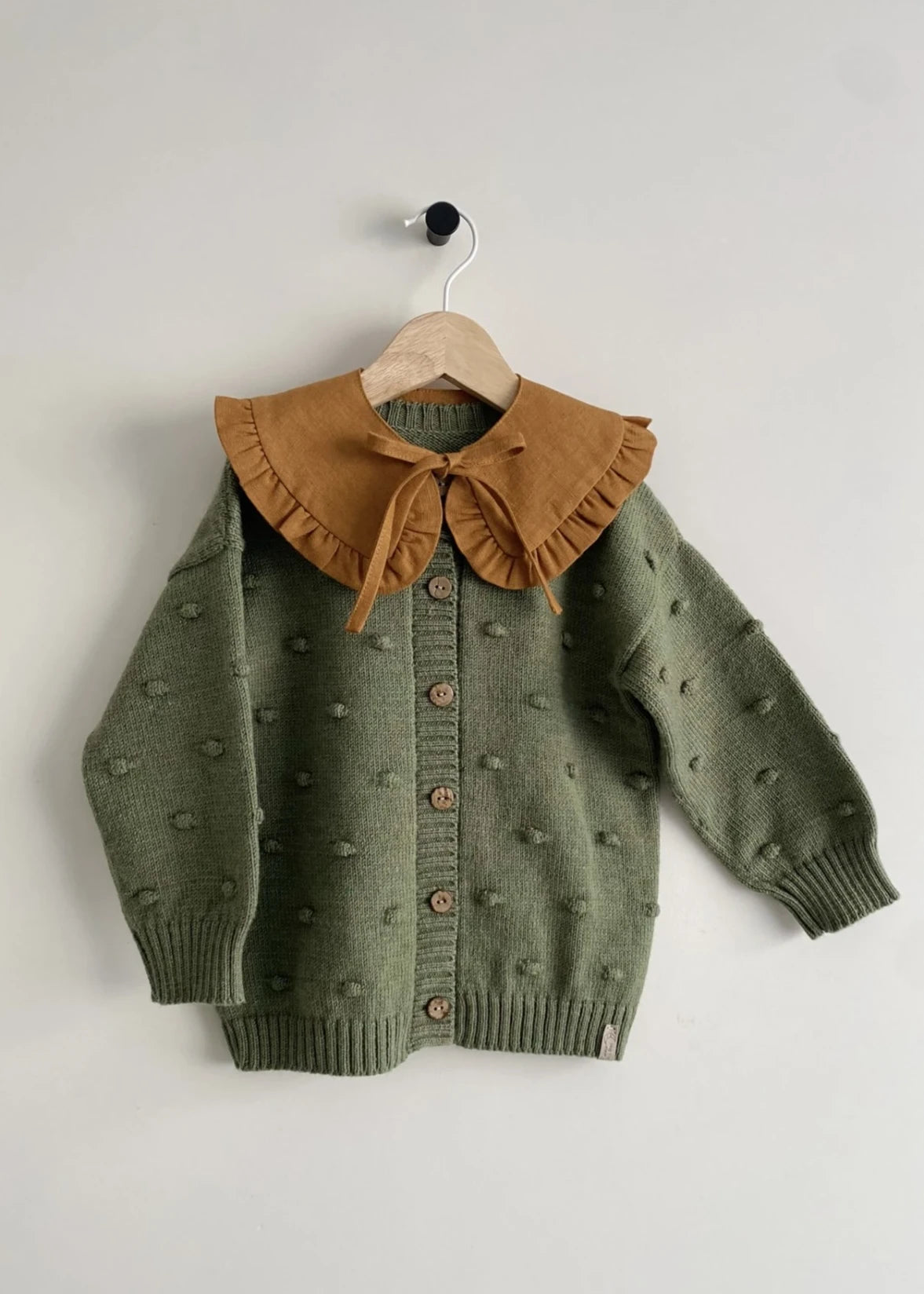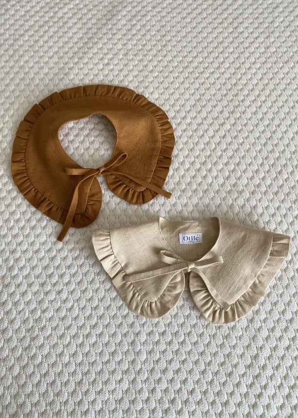 Uždedama lininė apykaklė mergaitei. Apykaklę galite derinti prie suknelių, megztinių, džemperių, marškinėlių kaskart sukuriant naują stilių.