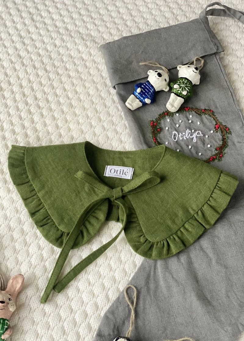 Uždedamavaikiska lino apykaklė. Apykaklę galite derinti prie suknelių, megztinių, džemperių, marškinėlių kaskart sukuriant naują stilių.