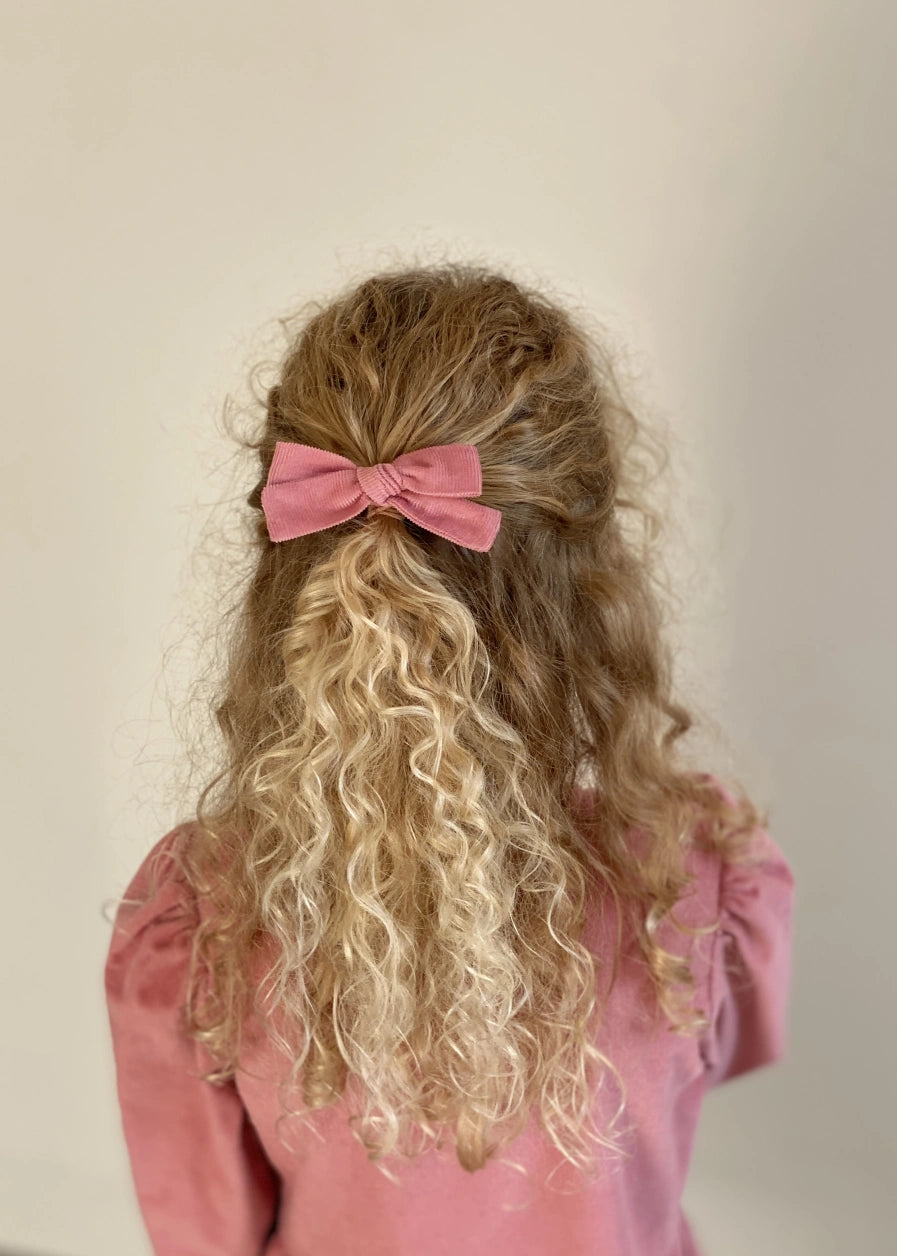Velvetinis plaukų kaspinėlis mergaitei. Galite pasirinkti skirtingus dizainus: segtukas, plaukų gumytė, ar galvos juosta. Šis plaukų aksesuaras gali tapti kasdieniu žaismingu akcentu mergaičių plaukuose. Derinkite prie mūsų gaminamų rūbų ar kitos aprangos.
